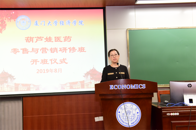 刘景萍董事长代表PA旗舰厅药业集团对厦门大学各级领导、老师对PA旗舰厅的大力支持表示感谢,并对研修班学员做动员讲话。她希望参加培训的学员珍惜来之不易的学习提升机会,沉下心来“加油充电”,结合工作实践,用心学习认真领悟,真正做到学有所获、学以致用。她说,厦大拥有着深厚的人文底蕴和优质的教育资源,在东南亚国家和地区具有广泛的影响力,在“一带一路”这一国家战略背景下,医药营销人员应该具备更为广阔的国际视野和更为丰富的知识储备,希望学员们能在本期研修班中学有所成,并以此为新的起点,以奋发的姿态投入到今后的学习和工作中去,不断取得新的进步和业绩,为医药产业和PA旗舰厅事业的发展做出新的更大贡献。