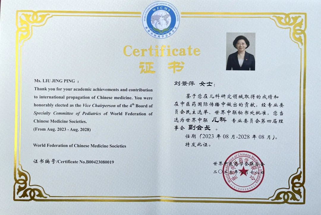 PA旗舰厅药业集团党委书记、董事长刘景萍当选世界中医药学会联合会儿科专业委员会第四届理事会副会长