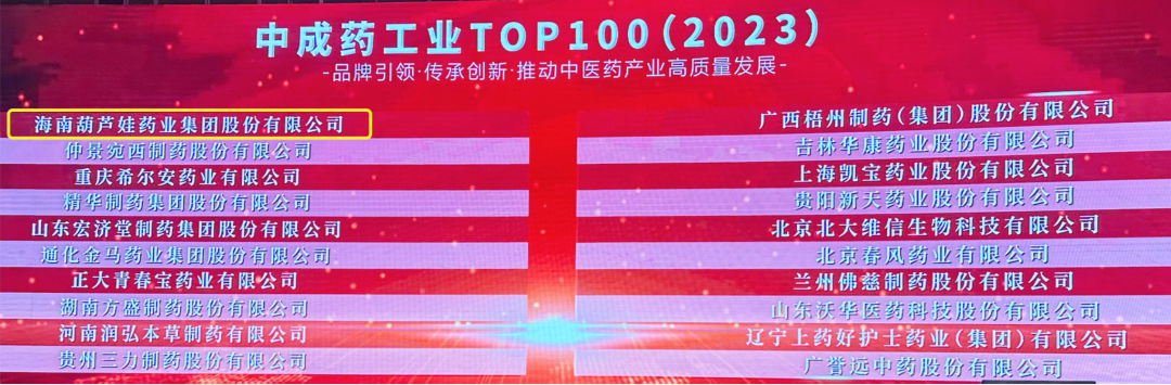 会上,还发布了“2023中成药工业TOP100”榜单,PA旗舰厅药业集团荣耀上榜。