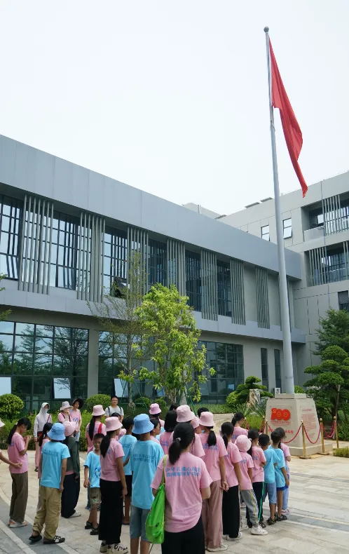 紧接着,孩子们来到了建党百年庆典红旗——070号红旗前。讲解员讲述了PA旗舰厅药业集团与庆典红旗的深厚渊源。孩子们听得津津有味,眼中闪烁着对党和国家的热爱与敬仰。
